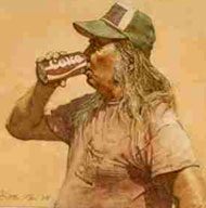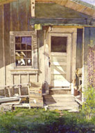 Early one morning in '83, I was sitting on the steps of my apartment, in Philadelphia, waiting for a client. I'd been awake all night finishing his record cover. I was still in a charged up, creative state of mind. Suddenly, I realized, I'd just drawn the old grocery store across the street, in my mind. It took me only a matter of seconds. I ran inside, got materials and quickly did the drawing and then the painting. Before my client arrived I had finished the grocery store and the house beside it. It was at that moment I began the work I do today. I painted the characters and features of my neighborhood with joy and inspiration. By March of '85, I realized I was free. I could go anywhere. As long as I had my tools I would always have my work. So I went to Maui. |