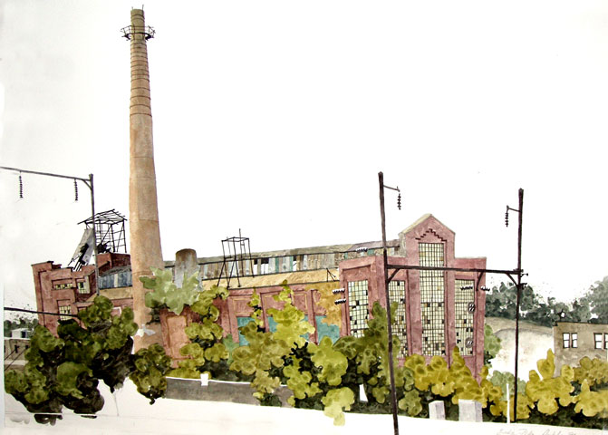 The abandoned remnants of the K&M plant tower above the town of Ambler. To me, it is Ambler, and if Ambler had a poster this would be the picture on it. I feel that way for reasons only someone who grew up there would understand. |