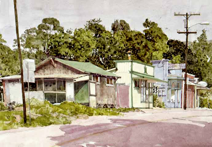 Coming up into Makawao is Kitada's Kau Kau Corner. Along with Komoda Bakery, it is the last authentic, local experience in Makawaotown. It is everything I look for in a subject. I've painted it again and again. |
