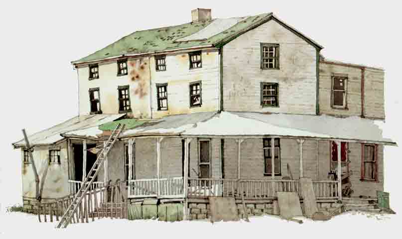 A few days earlier, I had had the pleasure of meeting the great painter ANDREW WYETH. I was still in Chaddsford visiting the Brandywine Museum. I stopped along the way to do this painting. Later on in the week I noticed Wyeth's painting ROAD KILL in the museum It tickled me to discover it was the same house. Years later I found out. this was the home of one of Wyeth's frequent subjects. |