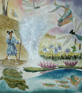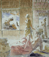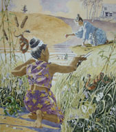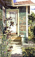 Early one morning in '83, I was sitting on the steps of my apartment, in Philadelphia, waiting for a client. I'd been awake all night finishing his record cover. I was still in a charged up, creative state of mind. Suddenly, I realized, I'd just drawn the old grocery store across the street, in my mind. It took me only a matter of seconds. I ran inside, got materials and quickly did the drawing and then the painting. Before my client arrived I had finished the grocery store and the house beside it. It was at that moment I began the work I do today. I painted the characters and features of my neighborhood with joy and inspiration. By March of '85, I realized I was free. I could go anywhere. As long as I had my tools I would always have my work. So I went to Maui. |