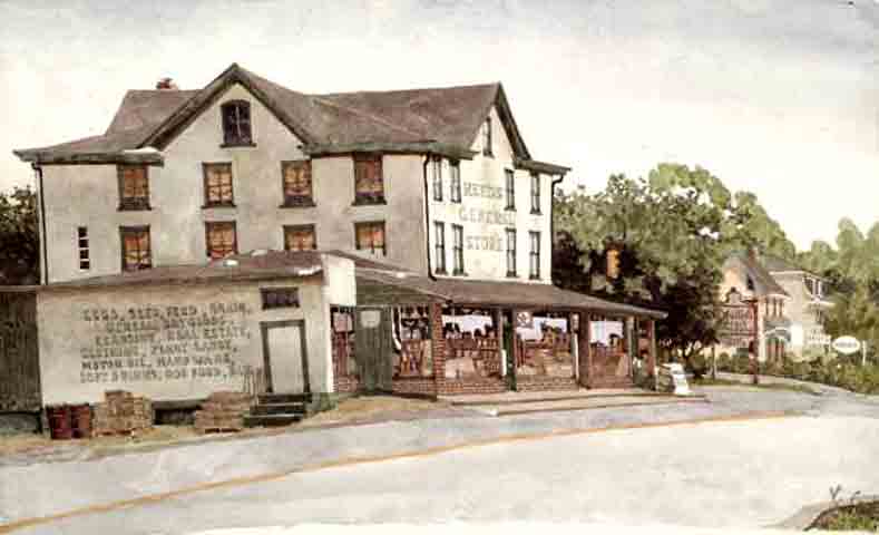 Shotguns, b.b.guns, fishing rods, reels and creels, farm tools, feed, traps and penny candy... Reed's General Store on the corner of routes 73 and 202 stocked everything one would need or want in this rural area. Though it now deals in decoritive lamps and wicker furniture, I portrayed it the way I remember it way back when... |