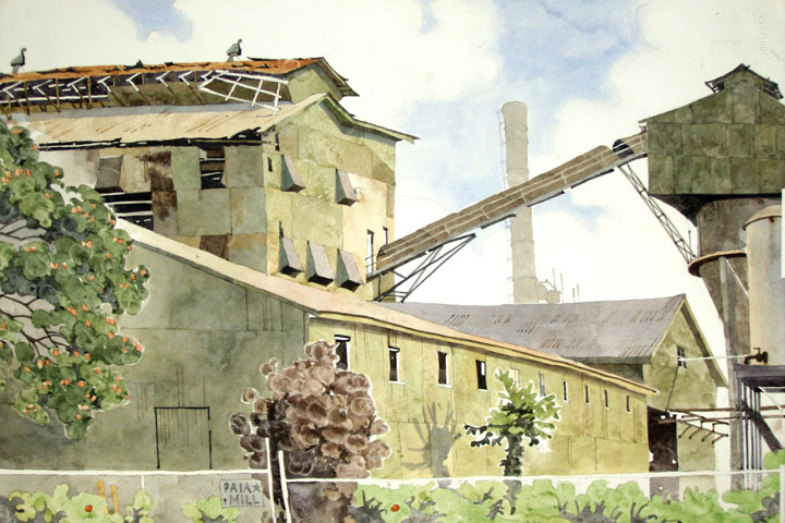 Though the Paia Mill stopped operating a few years ago, The structure still stands. It's as beautiful as ever. The more it crumbles the better it looks. As long as it's there, I'm sure I'll continue to paint it. |