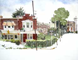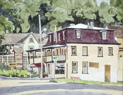 | Colorful Eddie Flotte watercolor scenes of Ambler Pa. and surrounding Montgomery County. Watercolors that speak volumes on small town life. |