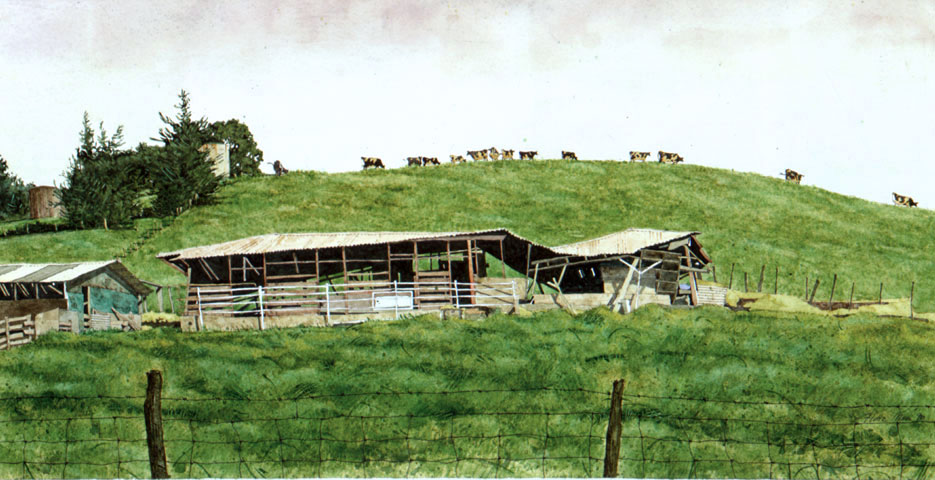 ![]() The calf barns at the Haleakala Dairy was one of my all time favorite work sites. The Dairy closed and little by little they finally deteriorated till they were gone. I painted it often from many points of view.   This could be called available as a signed open edition print approximately 9in. by 16in. $55.00 plus shipping GO BACK |