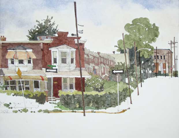 All of these houses were a big part of my paper route. This house on the corner was well known to kids through the neighborhood. The streets were crowded with children on there way to and from school... many went home for lunch. There was a great pear tree in the yard ... The man of the house was kind and generous and would welcome us to come have a pear. On friday afternoons, I would stand in his living room collecting for the Philadelphia Bulletin. I will remember forever the routine aroma of something delicious frying in a pan in the kitchen ... I could hear it. My best guess would be cat fish caught at some secret spot which only he knew. |