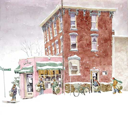 ![]() This is one of my favorite new paintings... It depicts the Ambler paperboys from back in the day.. impervious to the cold and snow. ![]() Kimmel and Silverman ![]() The old dilapidated garage in the upper picture is the property shown in this portrait of Aaron Brown ![]() The front view of the Wyndham Hotel ![]() ![]() "Morning in Makawao" The doorways, clothes on rack, sidewalk, street and trees have been added since the above version. ... Along with many other subtle finishing touches. ![]() ![]() ![]() ![]() ![]() Having some fun with the original Fong's ... I layered in some goats from my sketch book. ![]() More fun layering in life out of my sketch pad. ![]() ![]() GO BACK |